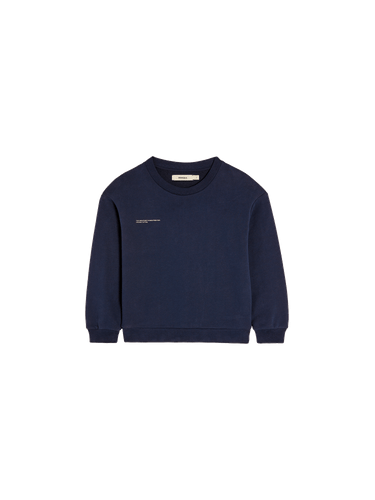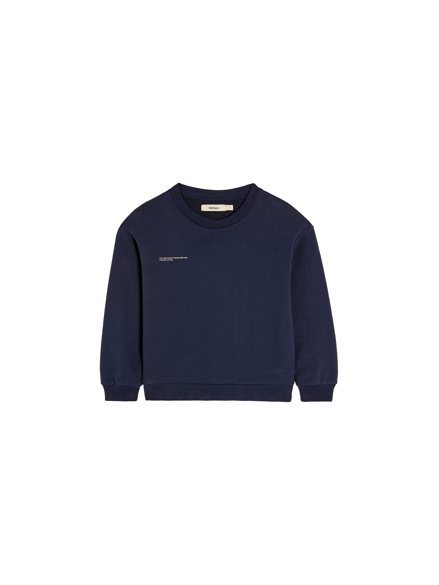 For your precious ones. Expertly crafted from 320 GSM organic cotton, the Kids' 365 Midweight Sweatshirt in navy blue offers an ultra-soft feel, an oversized fit and a genderless silhouette that holds its shape. Designed for year-round wear, this versatile style was treated with PPRMINT™ oil to help keep it fresher for longer.